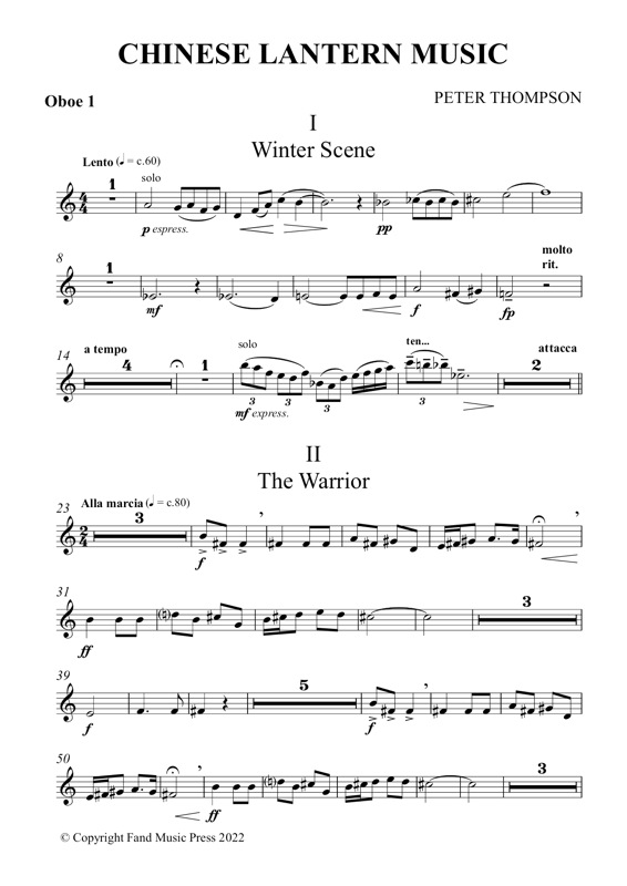 | Peter Thompson | (Play complete work)Chinese Lantern Music Twelve Balletic Scenes for Orchestra | Orchestra | 12½ mins | |||