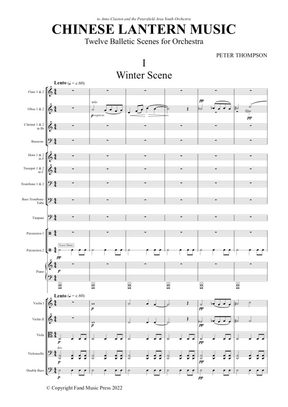 | Peter Thompson | (Play complete work)Chinese Lantern Music Twelve Balletic Scenes for Orchestra | Orchestra | 12½ mins | |||